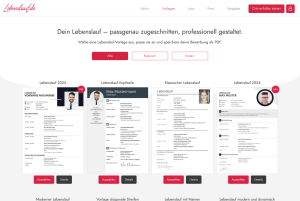 Lebenslauf.de ermöglicht die Erstellung einer professionellen Bewerbung in kurzer Zeit und mit geringem Aufwand. Die Erstellung perfekt auf den jeweiligen Adressaten zugeschnittener Bewerbungsunterlagen erfordert keine Expertise. Der Lebenslauf-Editor bietet eine große Auswahl an individuell anpassbaren Vorlagen. Die Bandbreite der verfügbaren Vorlagen umfasst kreative, formelle, klassische, moderne, bunte und schlichte Designs.