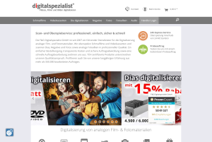 Die Firma Digitalspezialist ist einer der führenden Scan- und Überspieldienste in Deutschland und der einzige Anbieter auf dem Markt, der Produkte anbietet, die vom TÜV Rheinland zertifiziert wurden. Das Unternehmen überspielt analoge Fotos und Filme auf DVD, USB-Stick oder Festplatte. Mehr als 7.600 Kunden beurteilen die Leistung des Unternehmens mit „sehr gut“ und 97 % empfehlen es weiter.